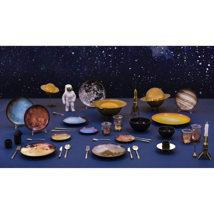 A visionary and poetic, the Cosmic Diner collection is inspired by the universe. Plates with captivating images and cutlery and accessories with bronze finishes, inspired from space and space missions.